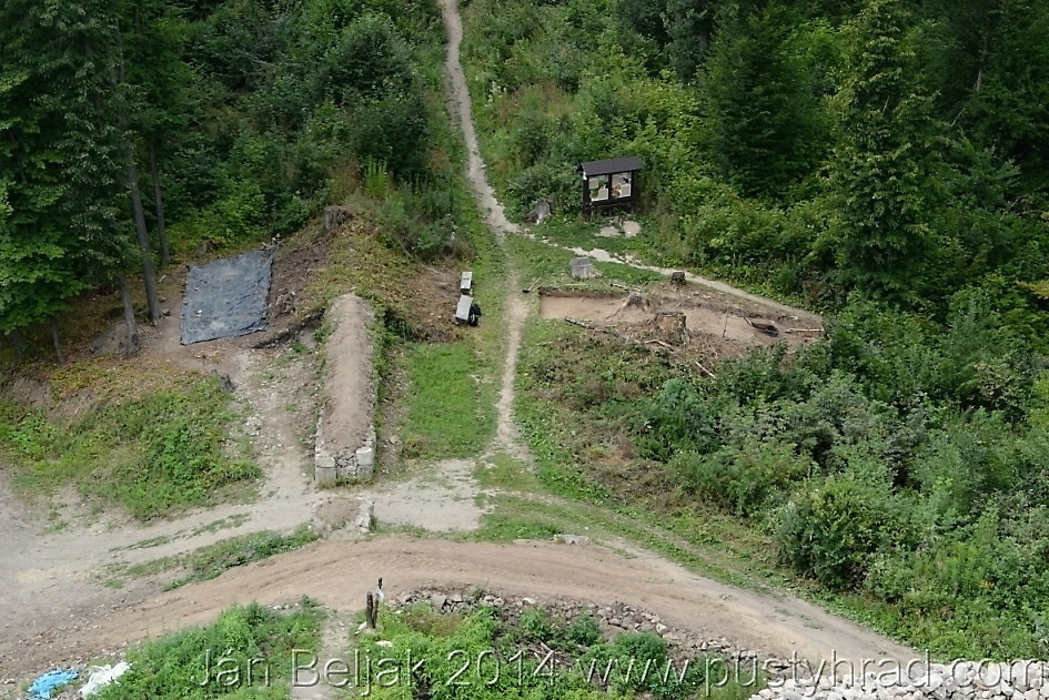 V sezóne 2014 sme preskúmali nielen exteriérové plochy pri východnej a severnej stene veže Dolného hradu, ale tiež strednú časť nádvoria a územie pri bráne v spojovacom múre v sedle pod vežou. Spolu bola preskúmaná plocha okolo 460 m2 a hĺbka v sondách sa pohybovala od 0,5 do 4,0 metra. Výskum pri veži bol dôležitý a potrebný predovšetkým kvôli odvedeniu dažďovej vody od základov veže.