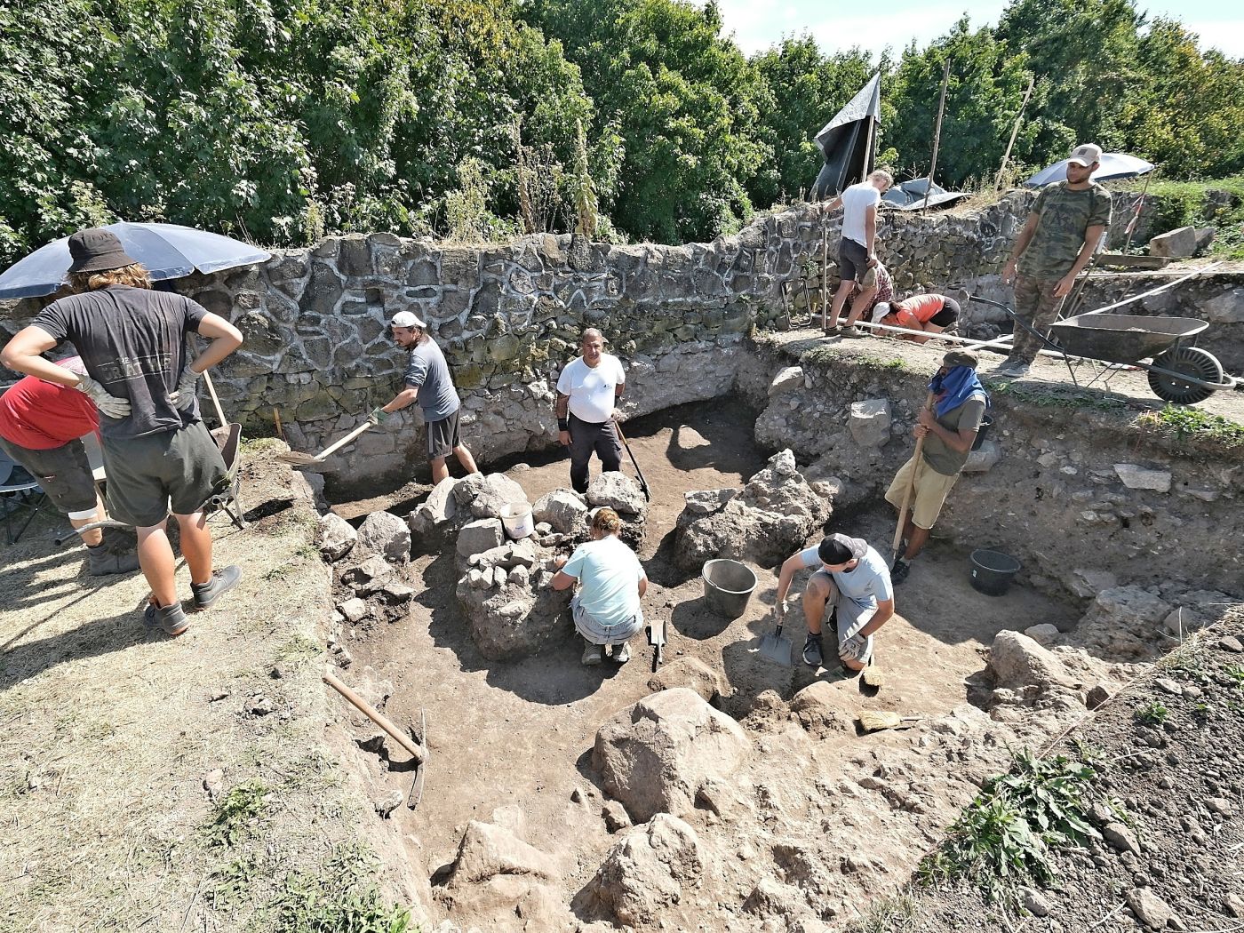 Prípravné práce na Pustom hrade od minulého týždňa začali už aj murári. Sústredia sa na vstupnú bránu tzv. Dončovho hradu a časť jeho priečnej hradby. Minulý týždeň nastúpili na výskum a obnovu Pustého hradu aj naši Draci a v pondelok (5.8.) sa pridajú ďalší študenti zo stredných a vysokých škôl zo Slovenska. Do Zvolena sa presunú aj študenti z Budapešti, ktorí predchádzajúce dva týždne pracovali na výskume na hrade Čabraď. Zúčastnia sa na letnej škole archeológie a okrem Pustého hradu budú skúmať aj neďaleké hradisko Gunda a kostol Zjavenia Pána v Ostrej Lúke.